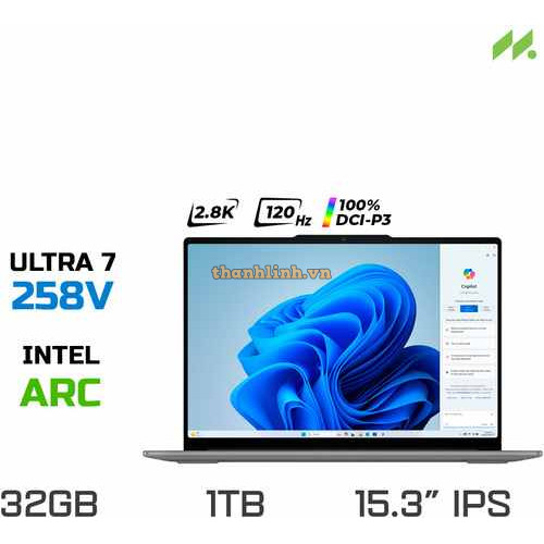 Laptop Lenovo Yoga Slim 7 15ILL9 83HM000GVN (Ultra 7-258V, Arc Graphics 140V, Ram 32GB LPDDR5x, SSD 1TB, 15.3 Inch IPS 2.8K 120Hz 100% DCI-P3, Win 11/Office HS 21)