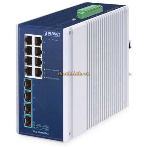 Bộ chuyển mạch Ethernet công nghiệp 8 cổng 1000T + 4 cổng 10G SFP+ Planet IGS-1000-8T4X