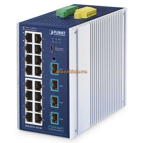 Bộ chuyển mạch Ethernetcông nghiệp L2/L4 16 cổng 1000T + 4 cổng 10G SFP+ Planet IGS-4215-16T4X