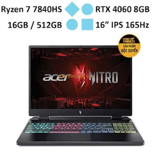 Laptop AI ACER Nitro 16 AN16-41-R3SM (Ryzen 7 7840HS/RAM 16GB/GeForce RTX 4060/512GB SSD/Windows 11)