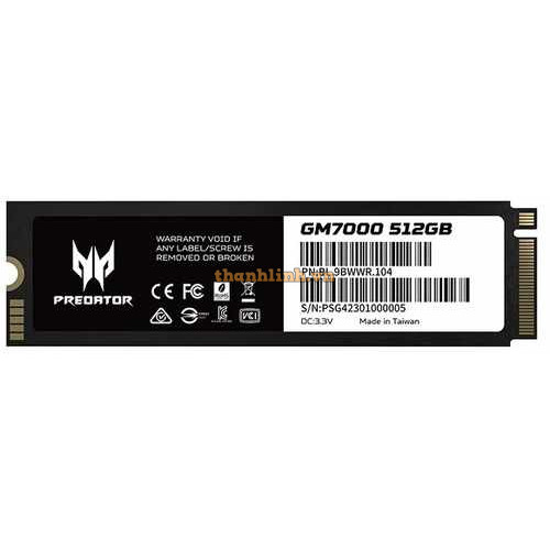 - Predator GM7000-512GB M.2 SSD loại bỏ giới hạn tốc độ khi chơi game (với tốc độ đọc lên đến 7400 MB/s) và cung cấp dung lượng lên đến 512GB. Đây là một ổ cứng SSD có nhiều tính năng, sử dụng PCIe 4.0, bộ điều khiển 8 kênh hàng đầu 12nm, bộ nhớ đệm DRAM độc lập, sửa lỗi 4K LDPC (ECC) và mã hóa AES.