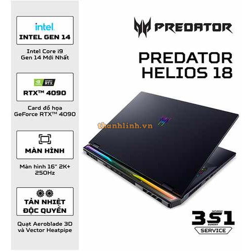 Laptop Acer Gaming Predator Helios 18 PH18-72-908N (NH.QP4SV.001) (Geforce RTX4090 16GB/i9 14900HX/32GB RAM/4TB SSD/18 inch 2K 250Hz/Win 11/Đen)