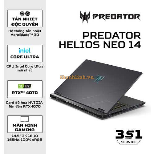 Laptop Acer Predator Helios Neo 14 PHN14-51-96HG NH.QRNSV.001 (Intel Core U9 185H | RTX 4070 | 32GB | 1TB | | 14.5 inch WQXGA | Win 11 | Đen)