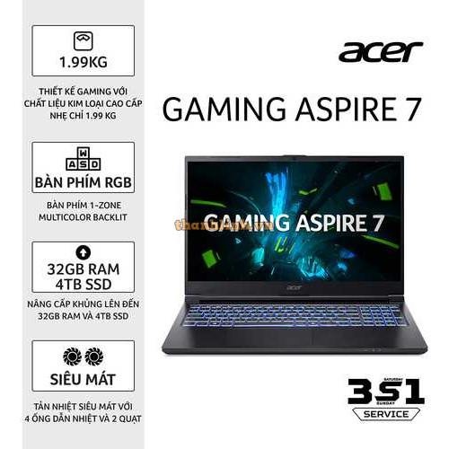 Laptop Acer Aspire 7 A715-59G-79XF NH.QX6SV.008 ( Intel Core 7 processor 240H | RTX 3050 | 15.6 inch FHD 144Hz| 16GB | 512GB | Win 11 | Đen)