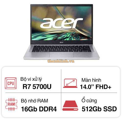Laptop Acer Aspire 3 A315-44P-R9W8 NX.KSJSV.002 (AMD Ryzen 7 5700U | 8GB | 512GB | AMD Radeon | 15.6 inch FHD | Win 11 | Bạc)
