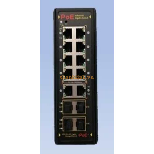 Bốn cổng PoE 10/100/1000 BASE-T→ Hai khe cắm SFP 100/1000 BASE-X Vỏ nhôm IP40© Nguồn dự phòng 48 – 5..