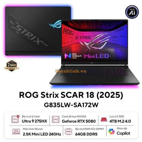 Laptop Asus Gaming ROG Strix G835LW-SA172W (U9 275HX/32GB RAM/4TB SSD/18 WQXGA 240hz/RTX 5080 16GB/Win11/Đen/Chuột/Balo)