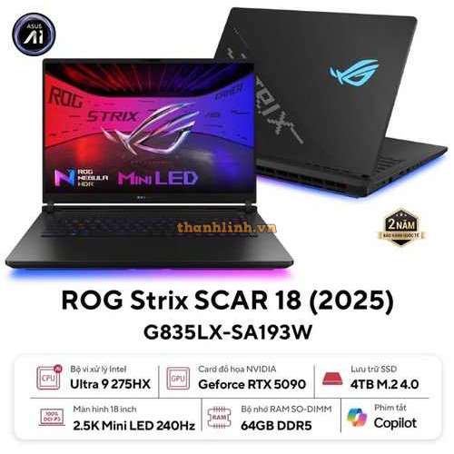 Laptop Asus Gaming ROG Strix G835LX-SA193W (U9 275HX/32GB RAM/4TB SSD/18 WQXGA 240hz/RTX 5090 24GB/Win11/Đen/Chuột/Balo)