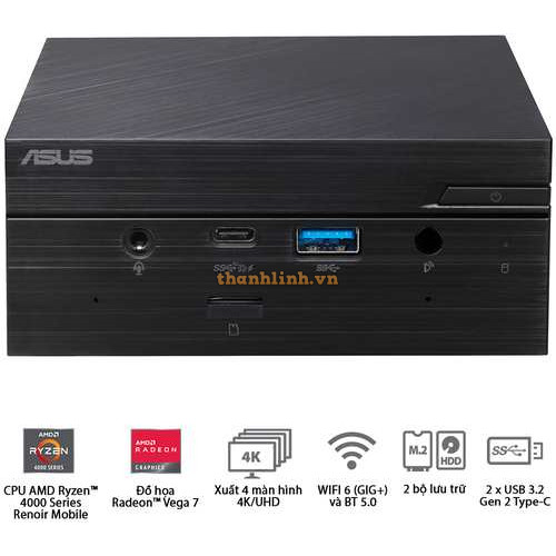Máy tính để bàn ASUS PN50 AMD Ryzen™ 5 4500U Bộ xử lý 2.3GHz (11M Cache, up to 4.0GHz)/non-RAM/non-STORAGE/Wi-Fi5/BT5.0/Gigabit LAN, Realtek® 8111EP/ 65W/VESA MOUNT/n-OS/ĐEN / HDMI , Sản xuất tại Trung Quốc