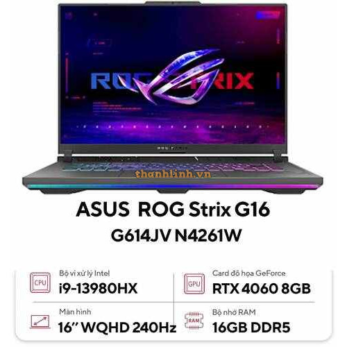 Laptop Asus ROG Strix G16 G614JV N4261W (Intel Core i9-13980HX | RTX 4060 |16GB | 1TB | 16 inch WQHD 240Hz | Win 11 | Xám)