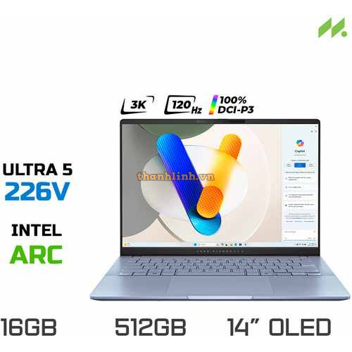 Laptop Asus Zenbook 14 UX3405CA-ST629W (Ultra 7 255H/ 32GB/ 512GB SSD/ 14 inch 3K/ 120Hz/ Win11/ Blue/ Vỏ nhôm/ Túi)
