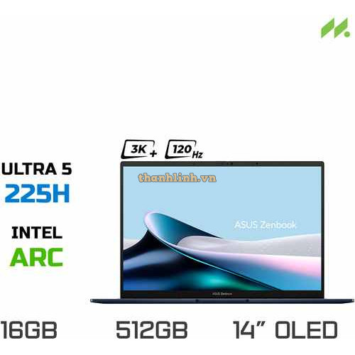 Laptop Asus Zenbook 14 UX3405CA-PZ187WS (Ultra 5 225H, Arc Graphics, Ram 16GB LPDDR5X, SSD 512GB, 14 Inch OLED 3K 120Hz, Win/OFFICE2024)