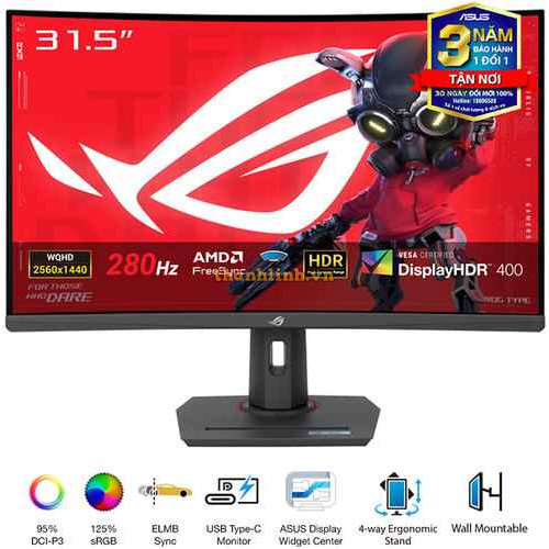 Màn hình ASUS ROG Strix XG32WCMS (31.5 inch/QHD/Fast VA/280Hz/1ms/Cong)