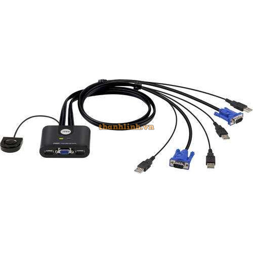 2-Port USB VGA Cable KVM Switch with Remote Port Selector ATEN CS22U