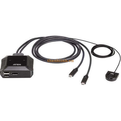 2-Port 4K DisplayPort USB-C Cable KVM Switch with Remote Port Selector ATEN US3312