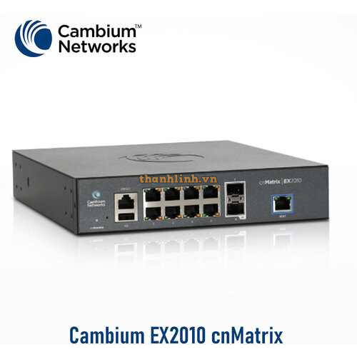Thiết bị chuyển mạch thông minh Cambium Network cnMatrix EX2010 MX-EX2010xxA-E với 8 cổng 1 GbE, 2 cổng quang SFP với kết nối nhanh, tự động chuyển đổi MDI/MDIX, tương thích nhiều thiết bị đầu cuối.