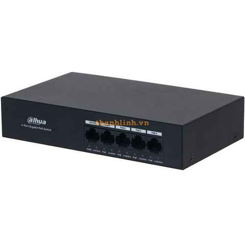 - DH-PFS3005-4GT-36 là một thiết bị chuyển mạch PoE không quản lý, thiết kế nhỏ gọn với 5 cổng Gigabit, trong đó có 4 cổng hỗ trợ cấp nguồn PoE. Sản phẩm hỗ trợ cắm là chạy, không cần cấu hình phức tạp, rất phù hợp cho các văn phòng nhỏ, cửa hàng, khách sạn, trường học hoặc bệnh viện.