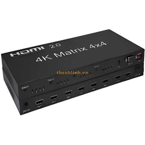 Bộ chuyển mạch ma trận HDMI 2.0 4x4 có khả năng kết nối đồng thời bốn nguồn tín hiệu độ phân giải cao và bốn thiết bị đầu cuối tín hiệu độ phân giải cao, đồng thời hỗ trợ điều khiển từ xa RS232. Thiết bị cho phép dễ dàng chuyển đổi hoặc phân phối bốn tín hiệu HD lên bốn màn hình hoặc máy chiếu tương thích với tín hiệu HD một cách tự do. Bộ chuyển mạch ma trận HDMI 4x4 cải thiện và khuếch đại tín hiệu đầu vào, sau đó truyền tải qua cáp HDMI mà không mất mát tín hiệu.