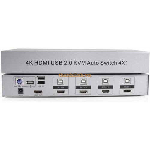 Bộ gộp KVM với 4 đầu vào HDMI và USB sang 1 đầu ra HDMI và giao diện PS / 2 và USB ở phía bảng điều khiển