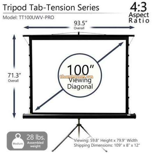 Màn chiếu 100-inch Elite Screens T100UWV1- Series: Tripod- Loại màn chiếu: Giá đỡ 3 chân Tripod- Kíc..