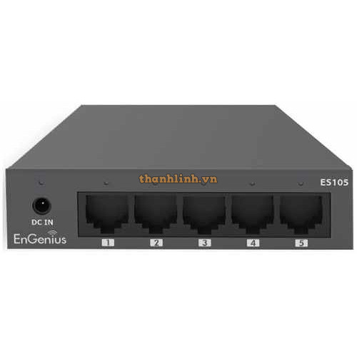 - EnGenius ES105 là một Switch Gigabit 5 cổng, phù hợp cho các doanh nghiệp quy mô vừa và nhỏ. Thiết bị triển khai đơn giản, chỉ cần plug-and-play, không cần cấu hình, lắp đặt dễ dàng. EnGenius ES105 được thiết kế chắc chắn, không có quạt gió, hạn chế tiếng ồn trong quá trình hoạt động. Tiêu chuẩn (IEEE 802.3az) tiết kiệm năng lượng dựa trên điều chỉnh lưu lượng truy cập mạng, tối ưu hiệu suất và chi phí.
