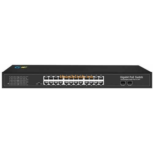 - G-NET GX-PES-2GX24GP-SFP provides 24 x 10/100/1000Base-TX PoE ports with 2 x 1000Base-FX SFP ports for uplink. The PoE port supports IEEE802.3af/at PoE standards, each PoE port can max supply up to 30W power. It can automatically detect and supply power for the IEEE 802.3af/at compliant Powered Device, like IP camera, IP phone, wireless AP, etc. To the connected devices which not support PoE, it will auto stop supplying power. It also supports IEEE 802.3, IEEE 802.3u, IEEE 802.3x standard with 10/100/1000M, full/half-duplex, and MDI/MDI-X auto negotiation, all ports support wire speed switch, jumbo frame tra nsmission. It is a reliable and economic choice for your security system, electronic power system and traffic system.