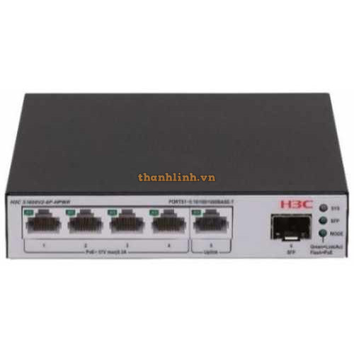 - H3C S1600V2-6P-HPWR hỗ trợ 5 cổng 10/100/1000BASE-T (bao gồm 4 cổng PoE+), và 1 cổng quang SFP 100M/1G, cấp nguồn AC, phù hợp với nhiều nhu cầu kết nối mạng khác nhau, giúp triển khai mạng linh hoạt và tiện lợi.