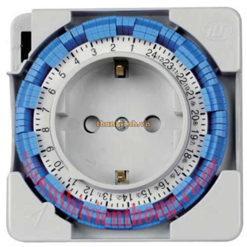 - Thiết bị hẹn giờ dạng cơ học nhỏ gọn, 96 khe thời gian (48 chu kỳ ON/OFF) theo chương trình hàng ngày, cắm trực tiếp trên ổ cắm IP20 (trong nhà).
