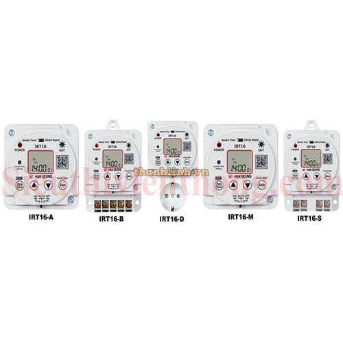 Công tắc hẹn giờ kỹ thuật số IRT16 series bao gồm: IRT16-A, IRT16-B, IRT16-D, IRT16-S, IRT16-M.