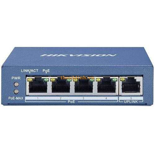 Switch PoE 5 ports quản lý qua cloud Hikvision DS-3E1105P-EI/M