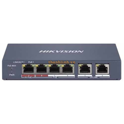 - Hỗ trợ 4 × cổng PoE RJ45 100Mbps, 2 × cổng mạng RJ45 100Mbps.