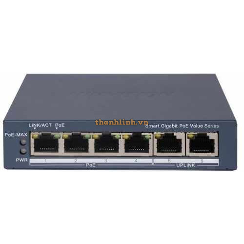 - Hỗ trợ 4 × cổng PoE Gigabit, 2 × cổng RJ45 Gigabit.