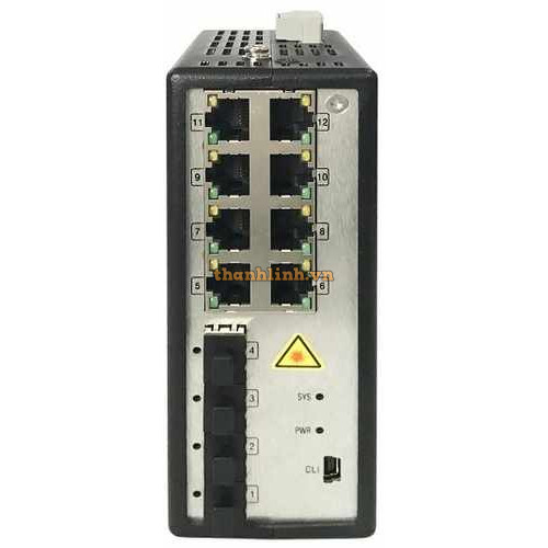- Hỗ trợ 4 cổng 1000BaseX SFP và 8 cổng PoE/PoE+ 802.3af/at 10/100/1000BaseT, 1 cổng CLI quản lý serial.