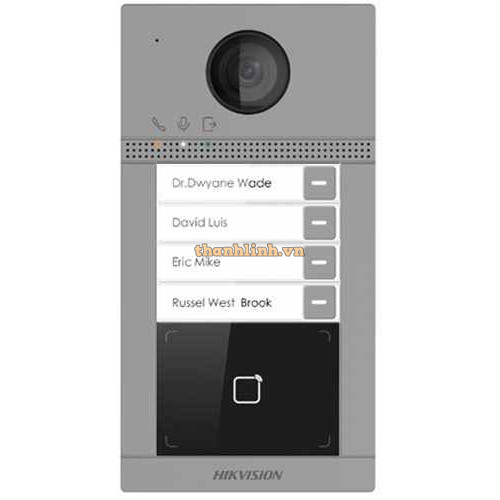- HIKVISION DS-KV8413-WME1(C) là dòng camera chuông cửa IP cho biệt thự, được thiết kế bằng kim loại, hỗ trợ nhiều nút để tùy chỉnh gọi. Người dùng có thể xem, trò chuyện và cấp quyền cho khách qua điện thoại di động từ bất kỳ đâu. DS-KV8413-WME1(C) được cấp nguồn bằng PoE tiêu chuẩn, không cần đấu dây nguồn bổ sung, dễ dàng lắp đặt và triển khai. Với mức độ bảo vệ cao, thiết bị phù hợp cho biệt thự, nhà riêng, v.v.