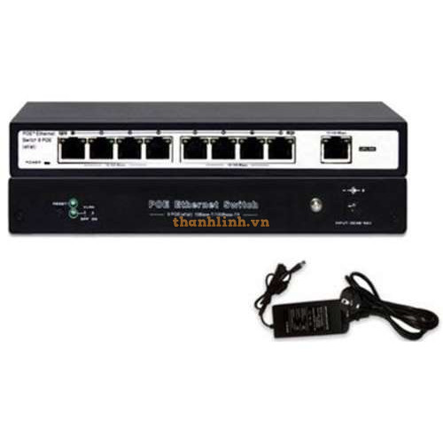 Switch PoE 8-cổng 10/100Mbps IEEE 802.3af/802.3at PoE Switch , mở rộng 2 cổng 1-port 10/100/1000Mbps UPLINK RJ-45 , 120W , gồm adaptor chuẩn châu Âu.