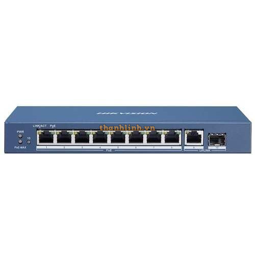 Switch POE GIGABIT 8 cổng PoE 1000M, 1 cổng uplink 1000M, 1 Cổng SFP 1000M Layer 2 Hikvision DS-3E0510P-E