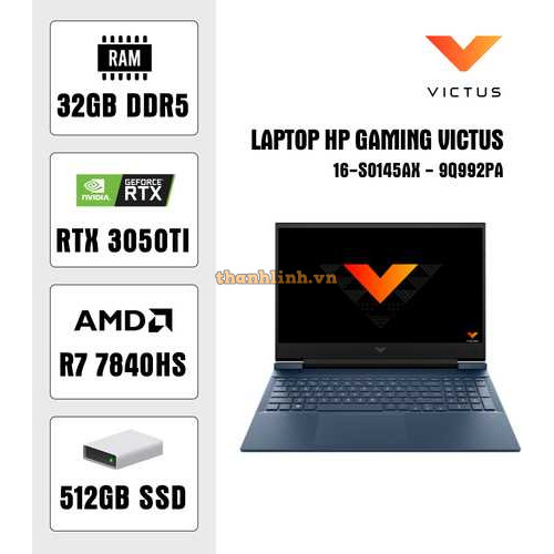 Laptop HP Gaming Victus 16-s0145AX - 9Q983PA (R7 7840HS/ 32GB/ 512GB SSD/ RTX 3050 6Gb/ 16.1 inch FHD/ 144Hz/ Win11/ Đen)