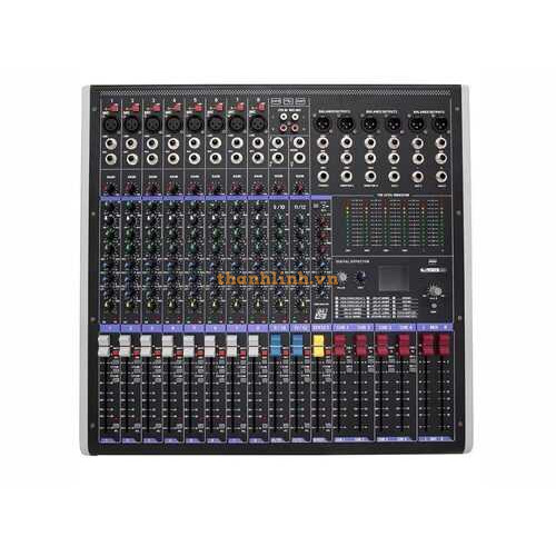 Bộ trộn kênh: 8 micrô, 12 đầu vào đường truyền (8 kênh đơn âm + 4 nhóm âm thanh nổi) / 4 bus nhóm + Bus âm thanh nổi 2.2 / 3AUX (bao gồm FX)
