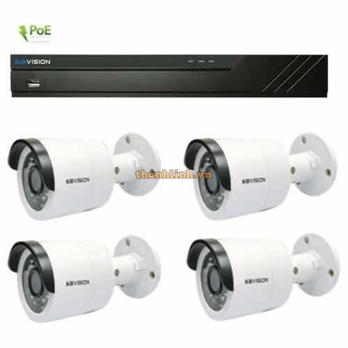 Bộ KIT đầu ghi và camera IP KBVision KIT 4 Gồm KX-A2111N2 4cái + KX-A8104PN2 - 1cái