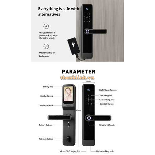 - Công nghệ nhận dạng vân tay trắc sinh học một chạm mới nhất : siêu nhạy, chống làm giả, đọc vân tay mờ, mảnh như của người già và trẻ em.