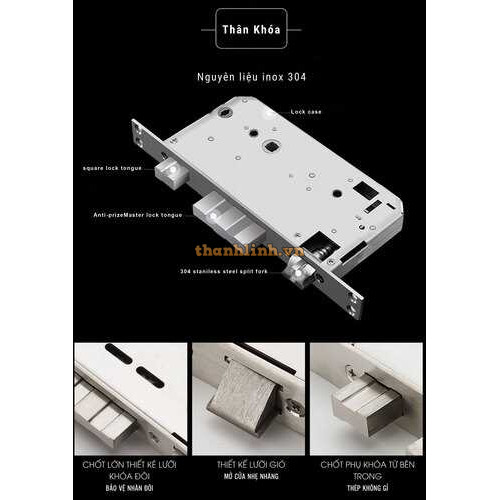 - Bộ cơ khoá chuẩn ANSI Grade 1 gồm 3 chốt inox304 đúc an toàn tuyệt đối.