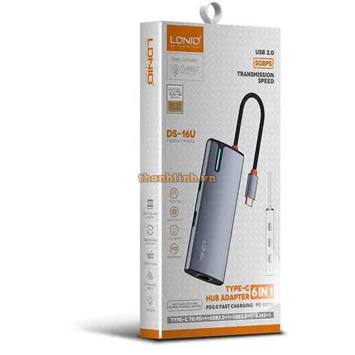 Hub Type-c DS-16H LDNIOMở rộng 5 cổng kết nối: Thêm 3 cổng USB 3.0 tốc độ cao, 1 cổng HDMI 4K và 1 c..