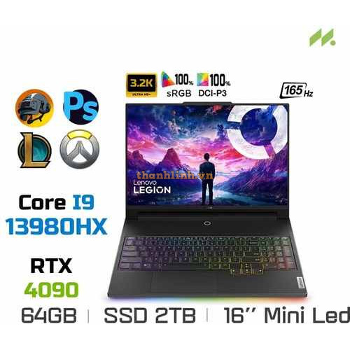 Laptop Gaming Lenovo Legion 9 16IRX8 83AG0047VN (i9-13980HX, RTX 4090 16GB, Ram 64GB DDR5, SSD 2TB, 16 Inch MiniLED 165Hz 3.2K 100% DCI-P3)