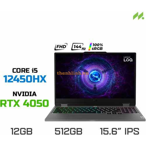Laptop Gaming Lenovo LOQ 15IAX9 83GS001QVN (i5-12450HX, RTX 4050 6GB, RAM 12GB DDR5, SSD 512GB, 15.6 Inch IPS FHD 144Hz 100% sRGB, Win 11)