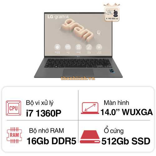 Laptop LG Gram 14Z90SG (14Z90SG.AH75A5) 14 inch WUXGA/ Core Ultra 7 155H/ 16GB/ 512GB SSD/ Intel Arc Graphics/ Win 11/ 12 tháng