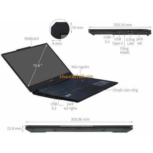 Laptop MSI THIN 15 B12UCX-1419VN - Core I5-12450H / RAM 8GB / 512GB SSD