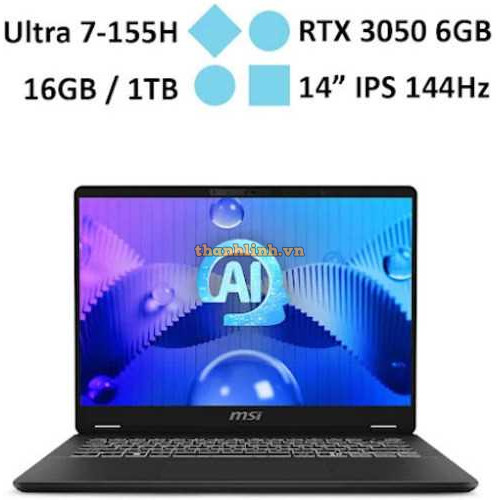 Laptop MSI Prestige 14 AI Studio C1UDXG-058VN (Ultra 7-155H/ RAM 16GB/ GeForce RTX™ 3050/ 1TB SSD/ Windows 11)
