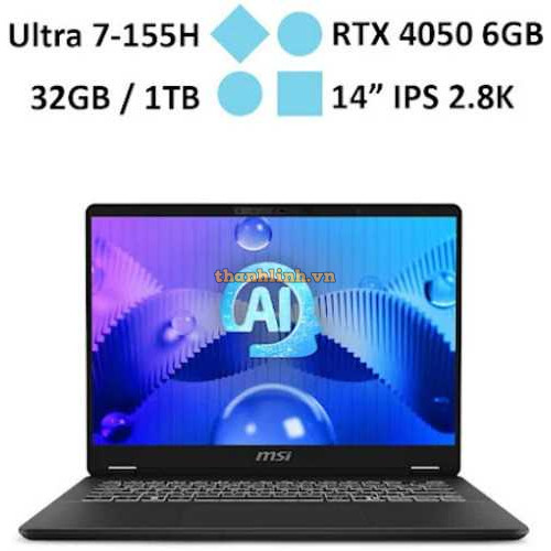 Laptop MSI Prestige 14 AI Studio C1VEG-056VN (Ultra 7-155H/ RAM 32GB/ GeForce RTX™ 4050/ 1TB SSD/ Windows 11)