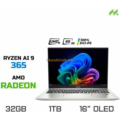 Laptop MSI Prestige A16 AI+ A3HMG-045VN (Ryzen AI 9 365, AMD Radeon Graphics , Ram 32GB LPDDR5X, SSD 1TB, 16 Inch OLED UHD+ 60Hz 100% DCI-P3, Win 11)