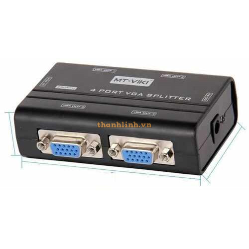 - Bộ chia vga 1 ra 4 MT-25040AS là sự lựa chọn hoàn hảo cho các bạn muốn sử dụng cho trình chiếu trong văn phòng hội nghị, cơ sở đào tạo và phát thanh truyền hình , với sự hỗ trợ cascadable lên đến ba cấp độ cho phép một tín hiệu video duy nhất để được gửi qua lên đến 64 màn hình video trong khi duy trì chất lượng cao nhất có thể.